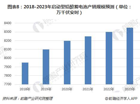 根据我国汽车和摩托车启动用铅酸蓄电池的需求预测,可以大致预测出我国启动用铅酸蓄电池未来的市场规模。预计2023年我国启动型铅酸蓄电池产销规模将达到8350万千伏安时左右。