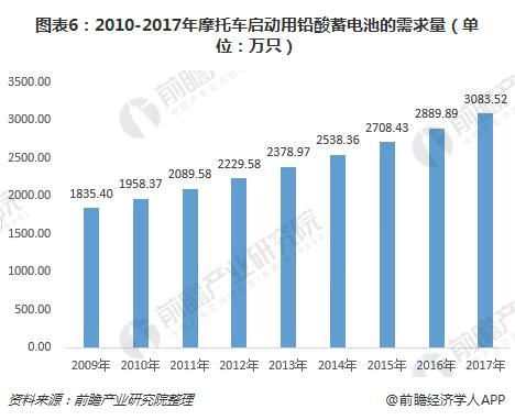 图表6:2010-2017年摩托车启动用铅酸蓄电池的需求量(单位:万只)