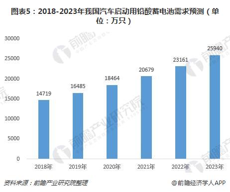 图表5:2018-2023年我国汽车启动用铅酸蓄电池需求预测(单位:万只)